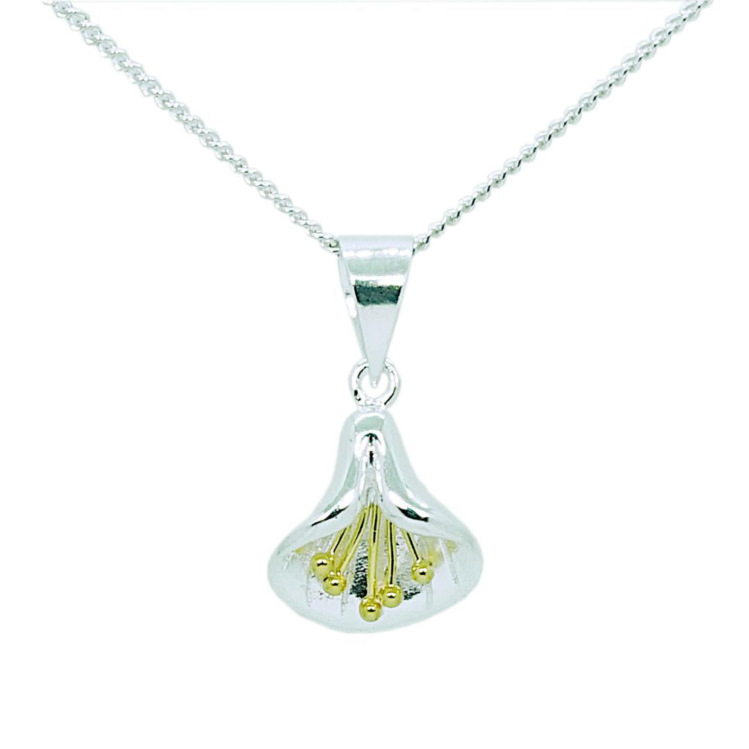 Irish Hallmarked Sterling Silver and Gold Plated Flower Pendant and 16" (40cm) Sterling Silver Curb Chain