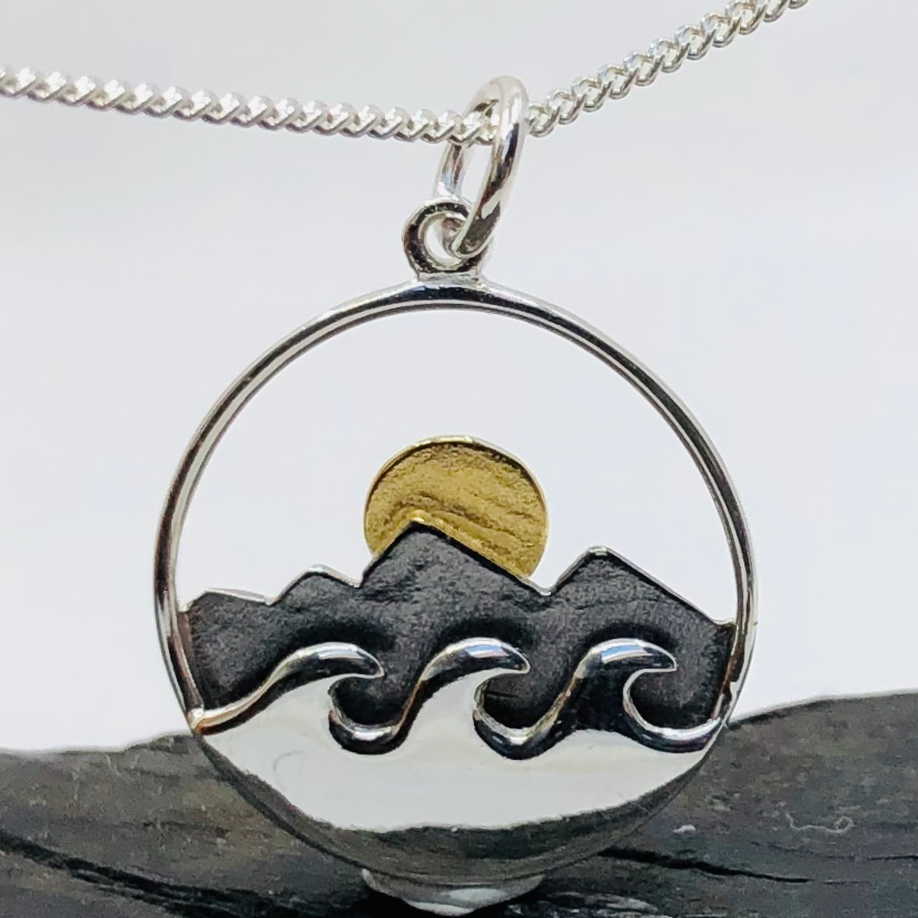 Sterling Silver and Gold Plated Ocean Sunset Pendant and Chain