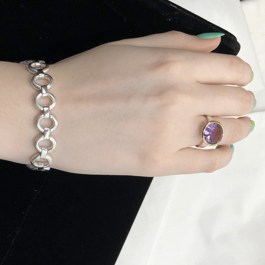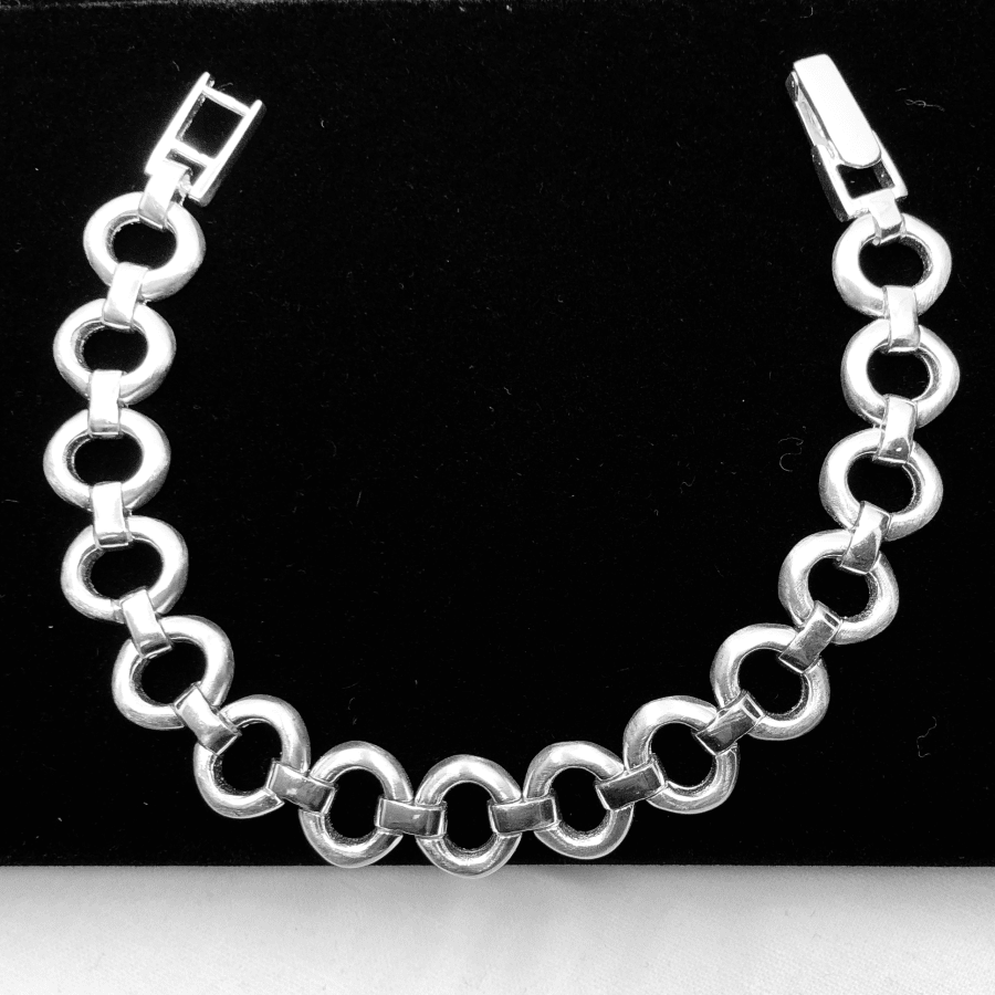 Substantial Brushed Sterling Silver Bracelet with Oval links.