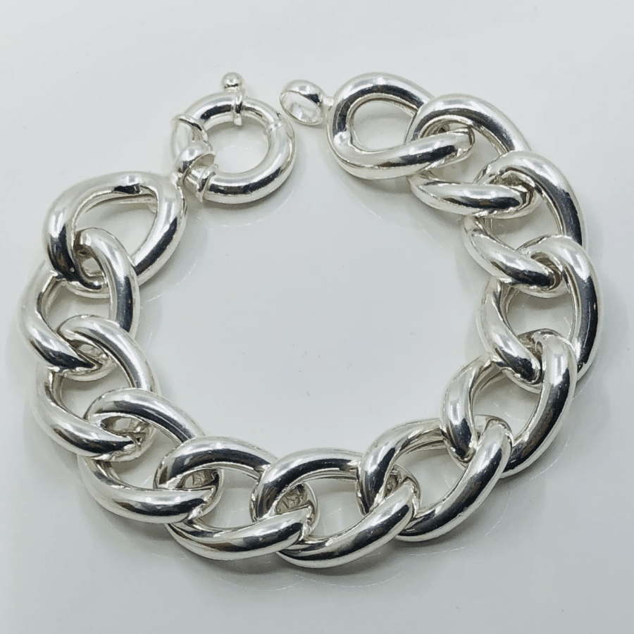 Hallmarked Sterling Silver Bracelet in a Classic style of rounded oval wide links.