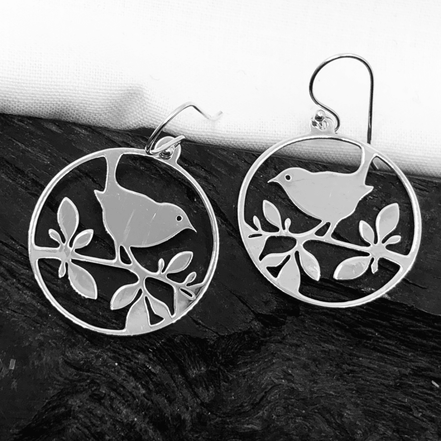 Sterling Silver bird in a tree Earrings. Probably a wee Robin, no doubt, spreading hope and happiness❣️