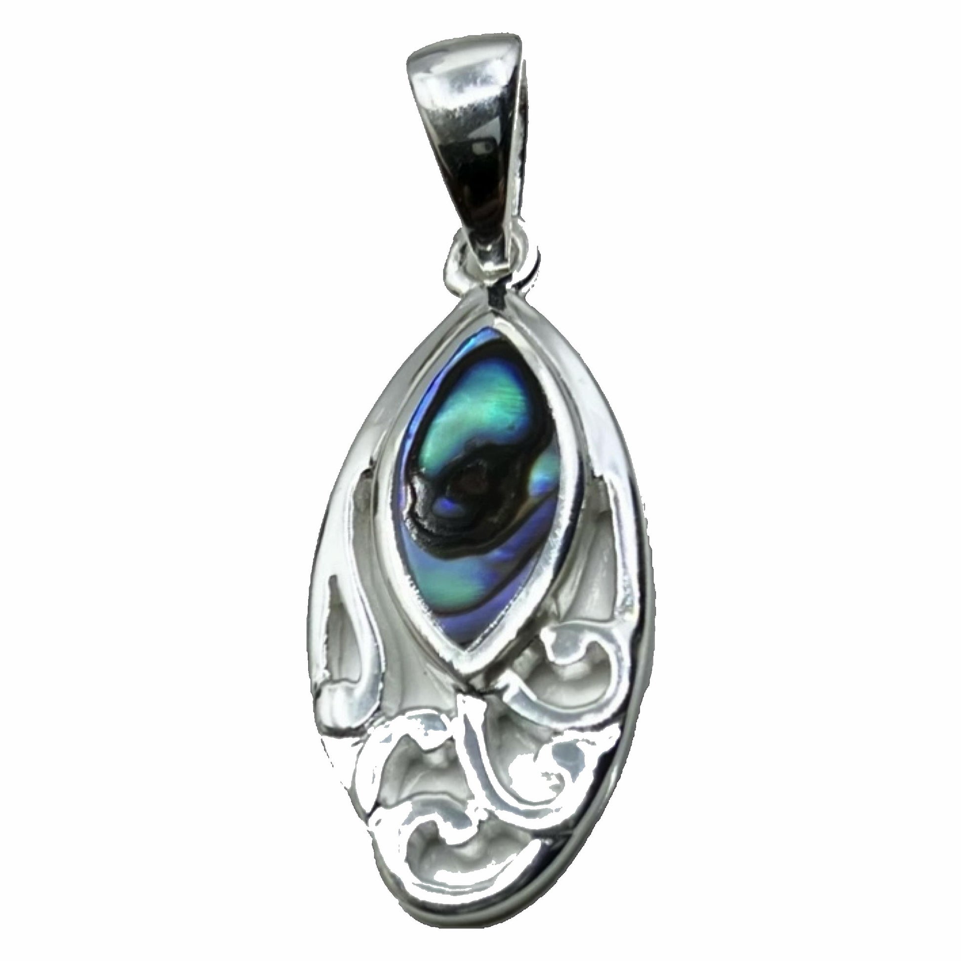 Irish hallmarked sterling silver abalone shell pendant. Beautiful and ornate. Measures 10mm X 25mm with bale.