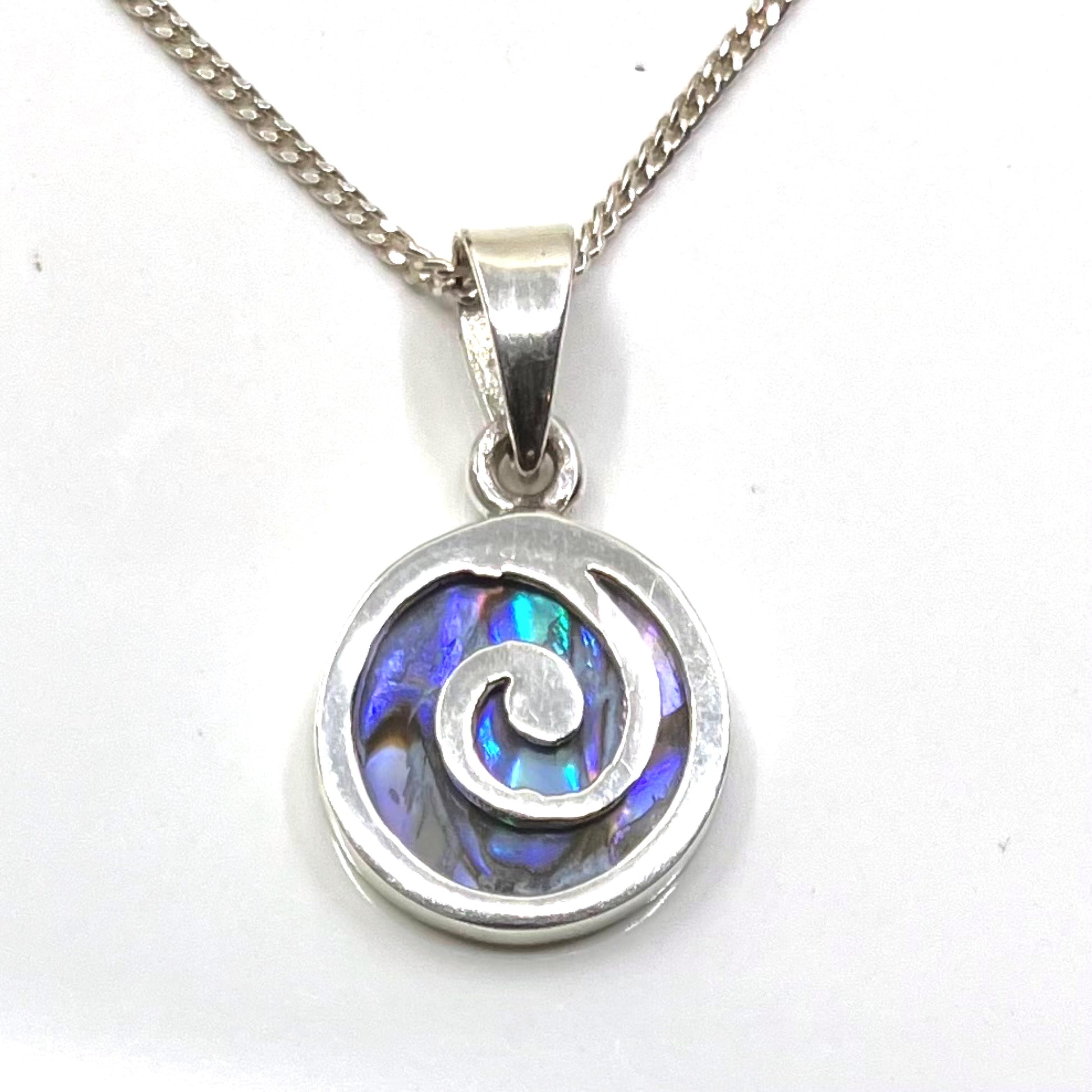 Abalone and Sterling Silver Pendant Spiral on Silver Chain