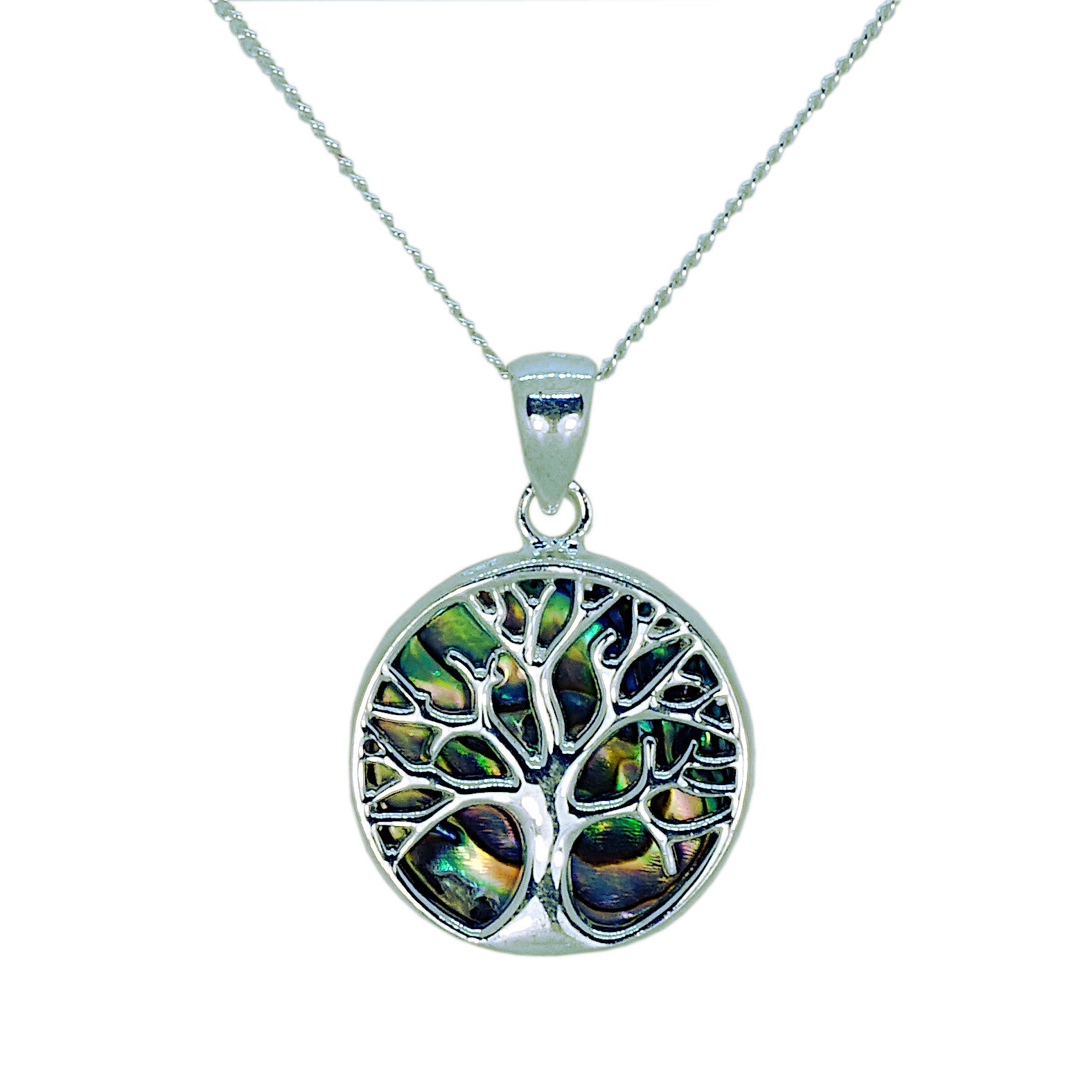 Abalone Shell Tree of Life Sterling Silver Pendant and Chain