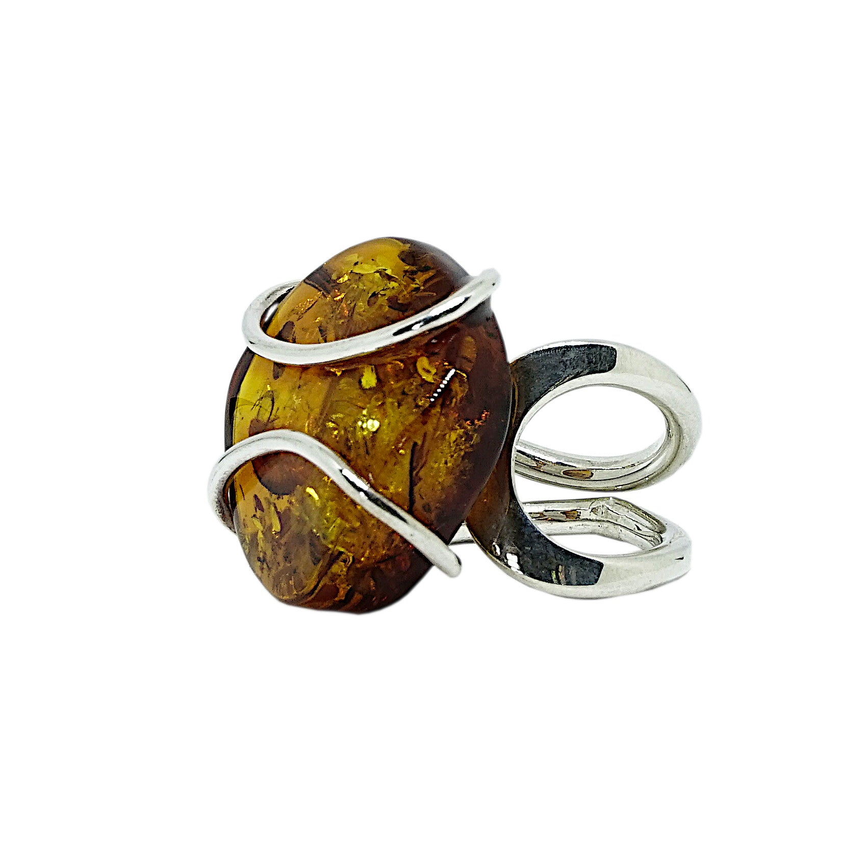 Amber and Sterling Silver Oval Ring