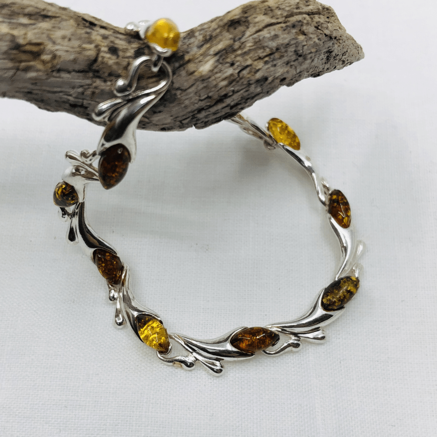 A Multi Coloured Amber Bracelet set in Sterling Silver.