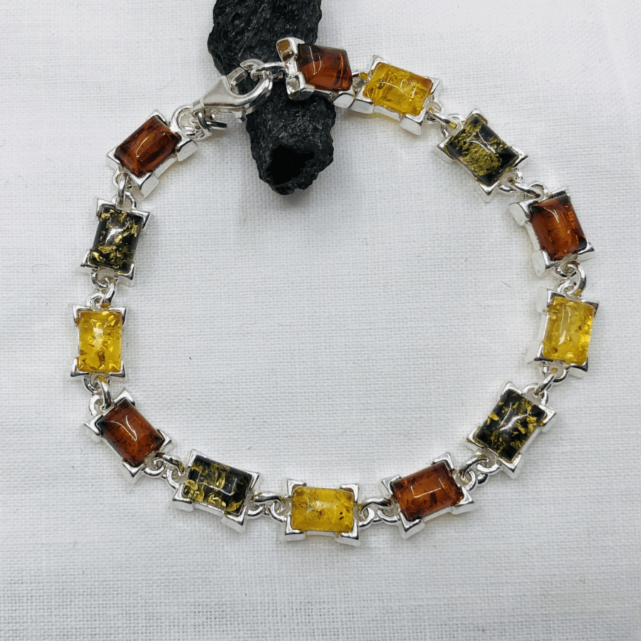 Sterling Silver Bracelet handset with rectangular Ambers in multiple colours so will definitely match your other Amber Jewellery❣️