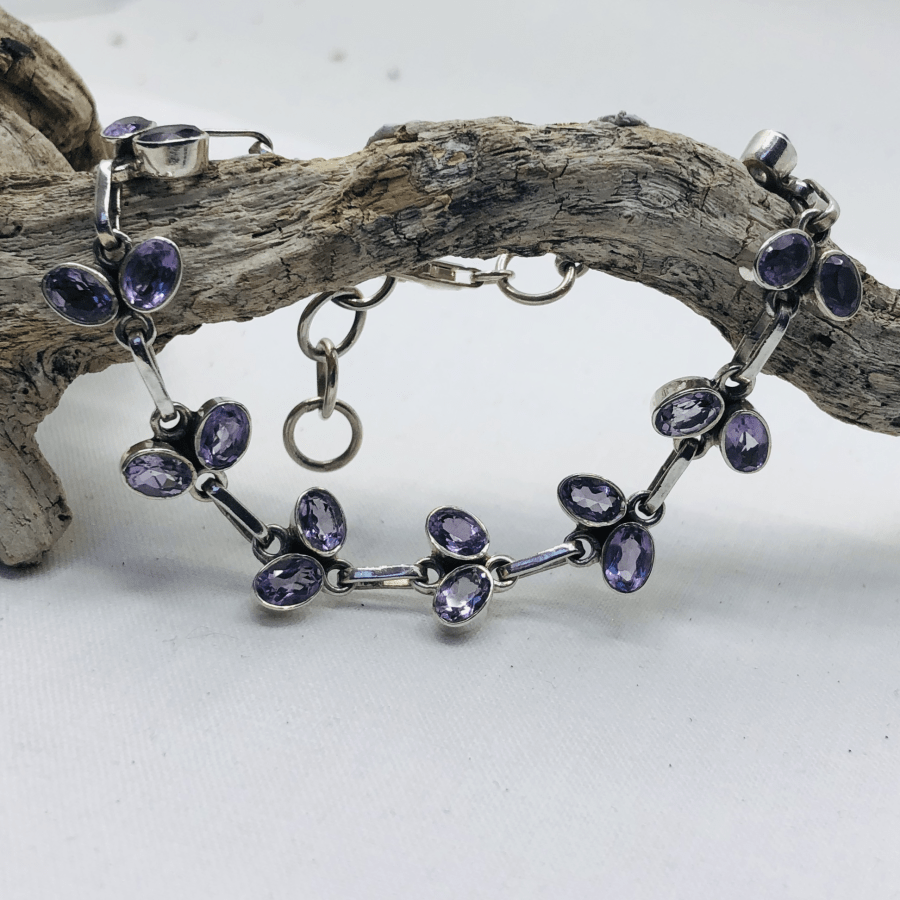 Amethyst and Sterling Silver 20 Faceted Oval Stone Bracelet