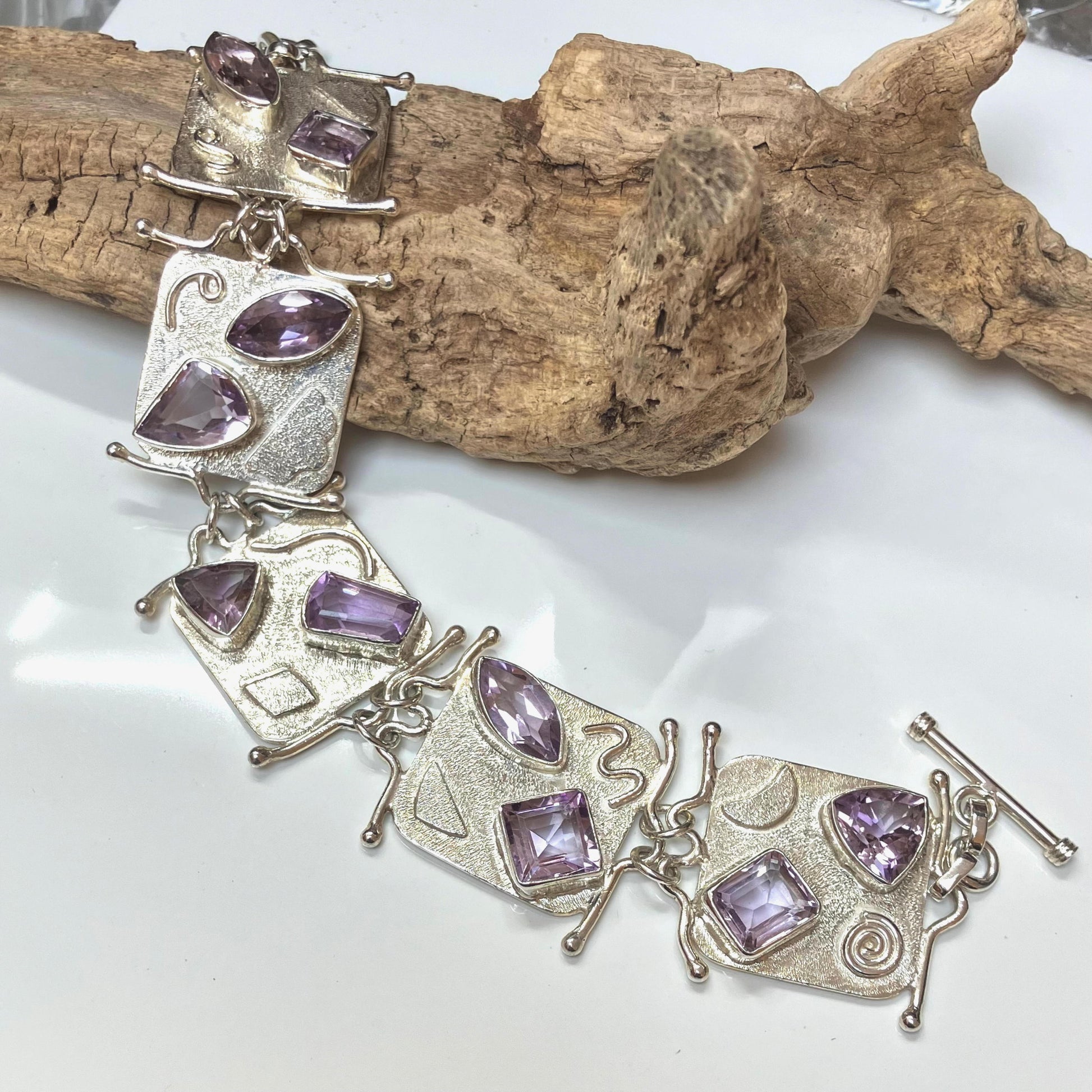 Funky and modern Sterling Silver Bracelet is hand set with 10 sparkling cut Amethysts to add to your shine✨