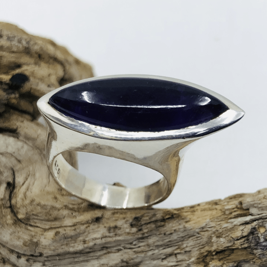 Eye Shaped Amethyst Handset in a Hallmarked Sterling Silver Ring.