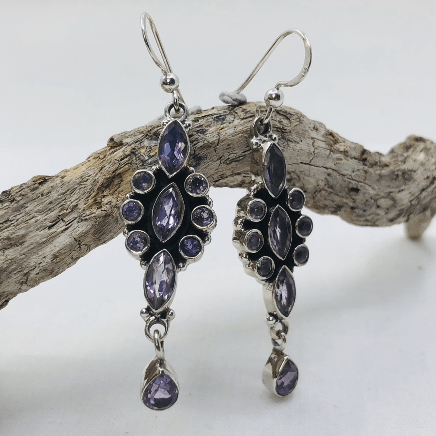 Amethyst and Sterling Silver Faceted 10 Stone Earrings
