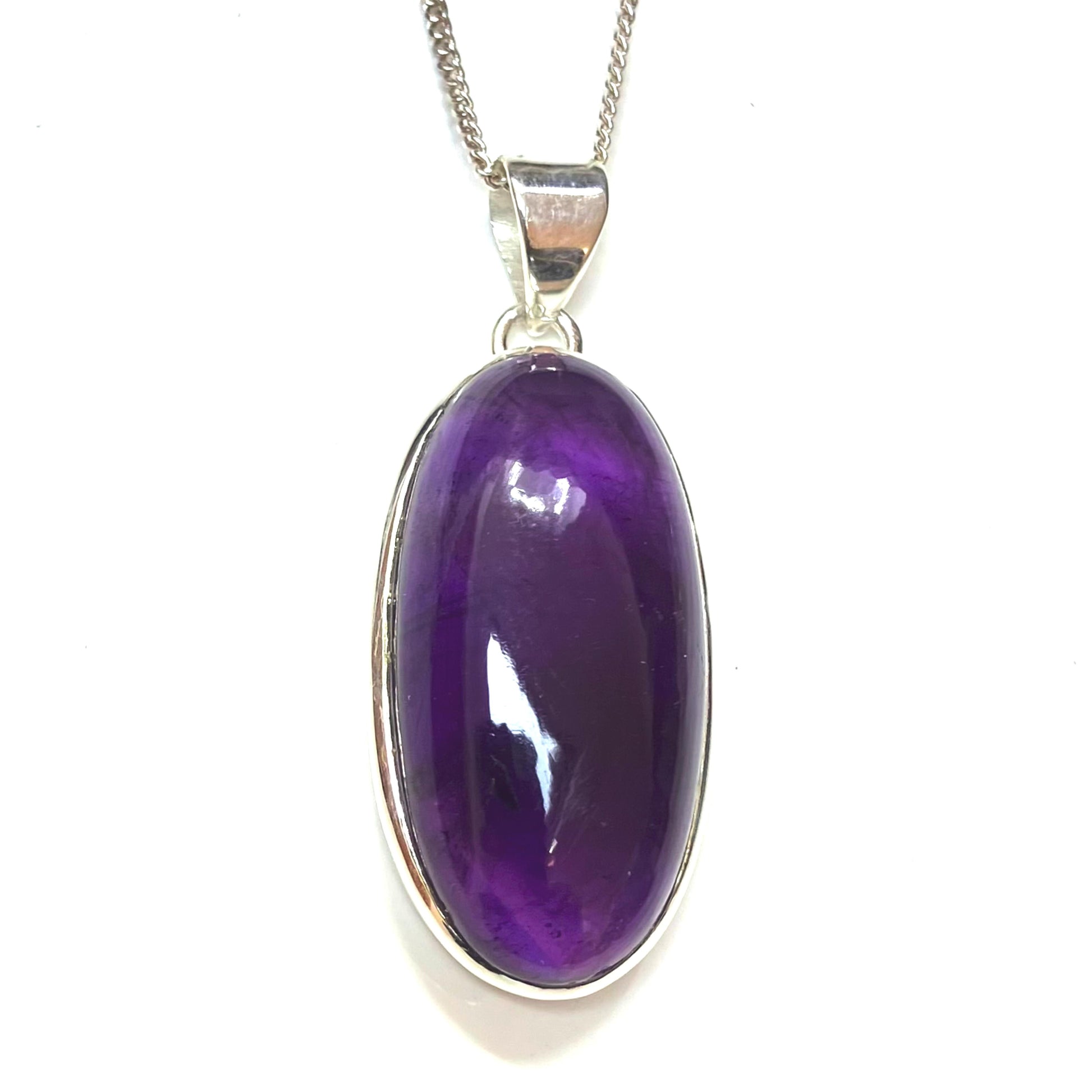 Amethyst and Sterling Silver Pendant long oval on Silver Chain