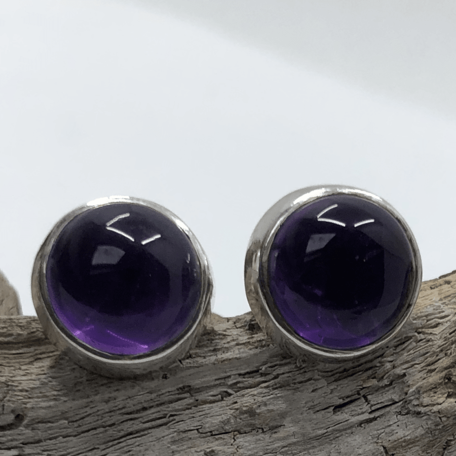 Amethyst and Sterling Silver Round Stone Bezel Set Studs