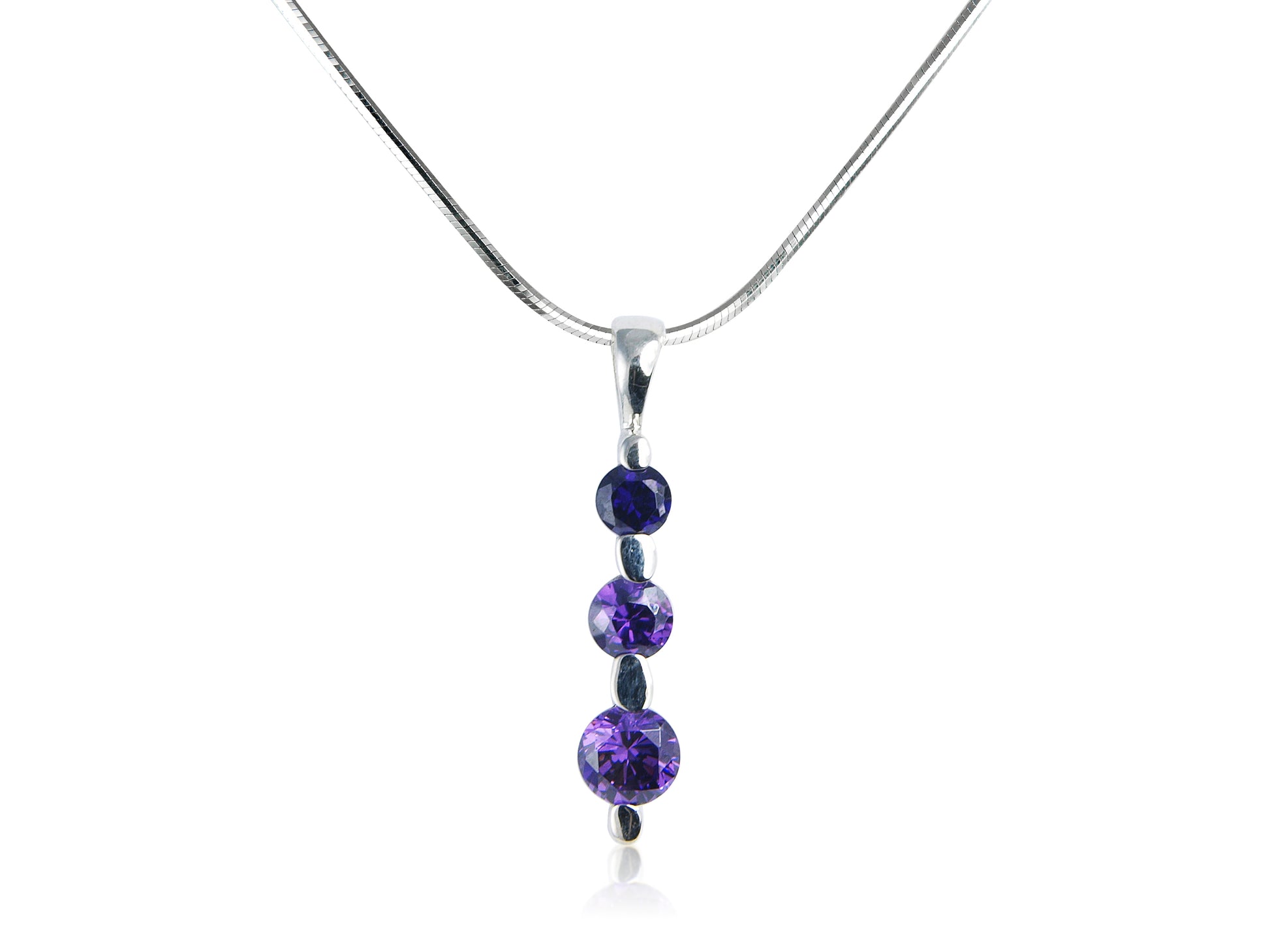 Amethyst CZ 3 Stone Sterling Silver Pendant and Chain