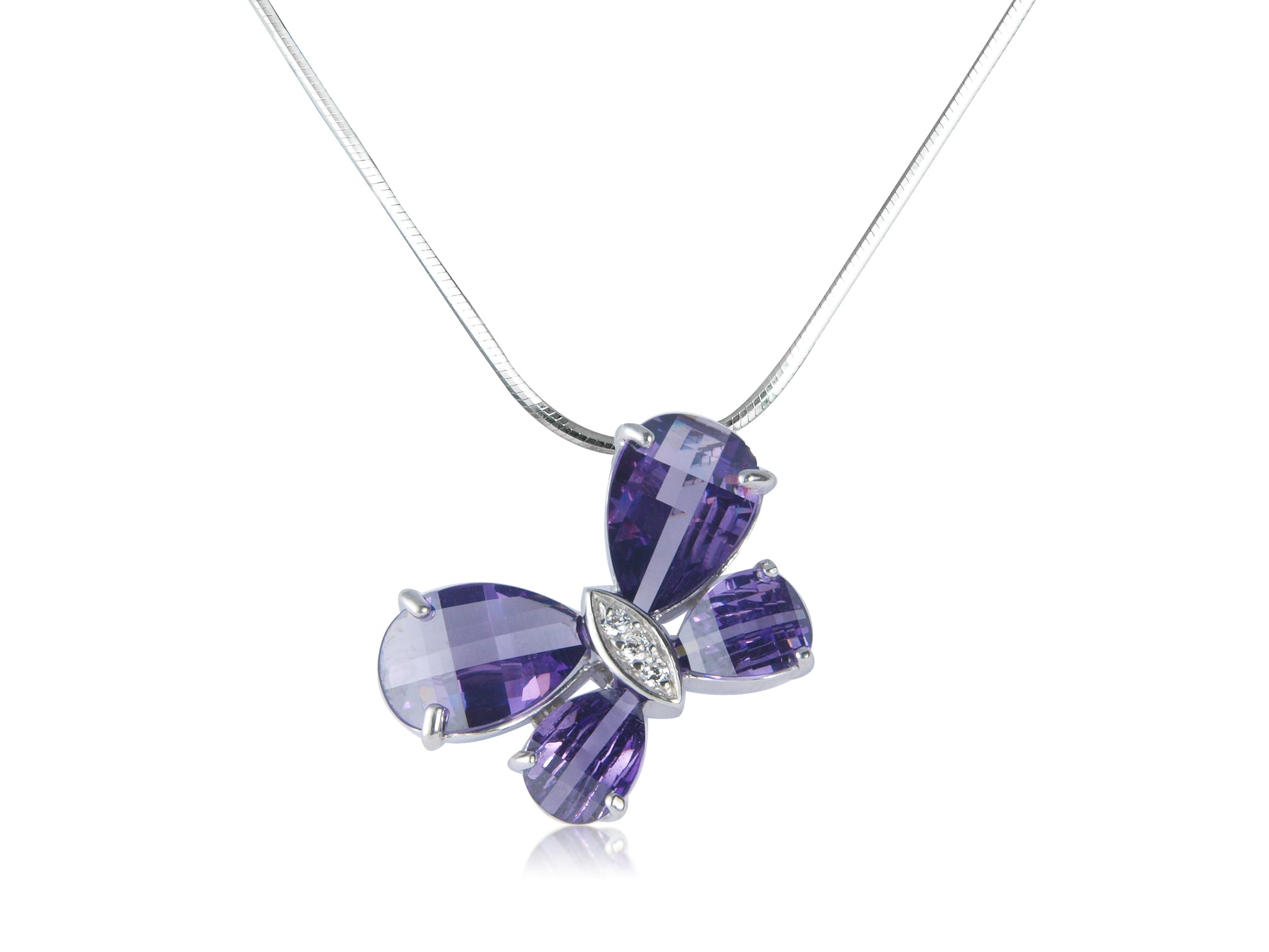 Amethyst CZ Sterling Silver Butterfly Pendant and Chain
