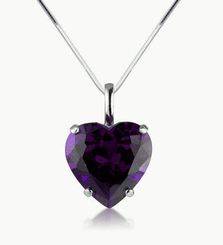 Sterling Silver Purple Cubic Zirconia Pendant and 16" (40cm) shiny sterling silver chain.