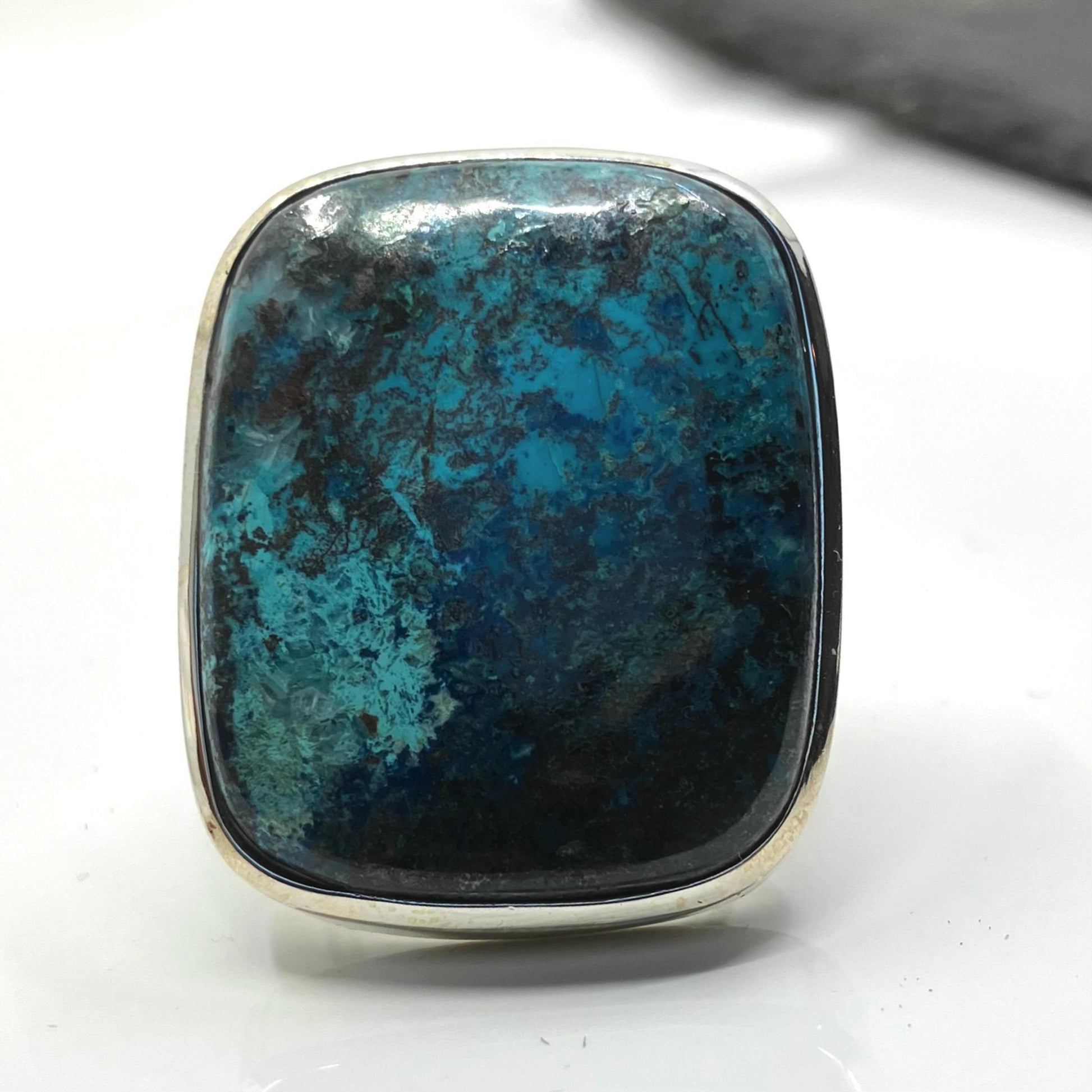 Open sized Azurite and Sterling Silver Ring. Set it once for yourself and don't loan to anyone 🥰