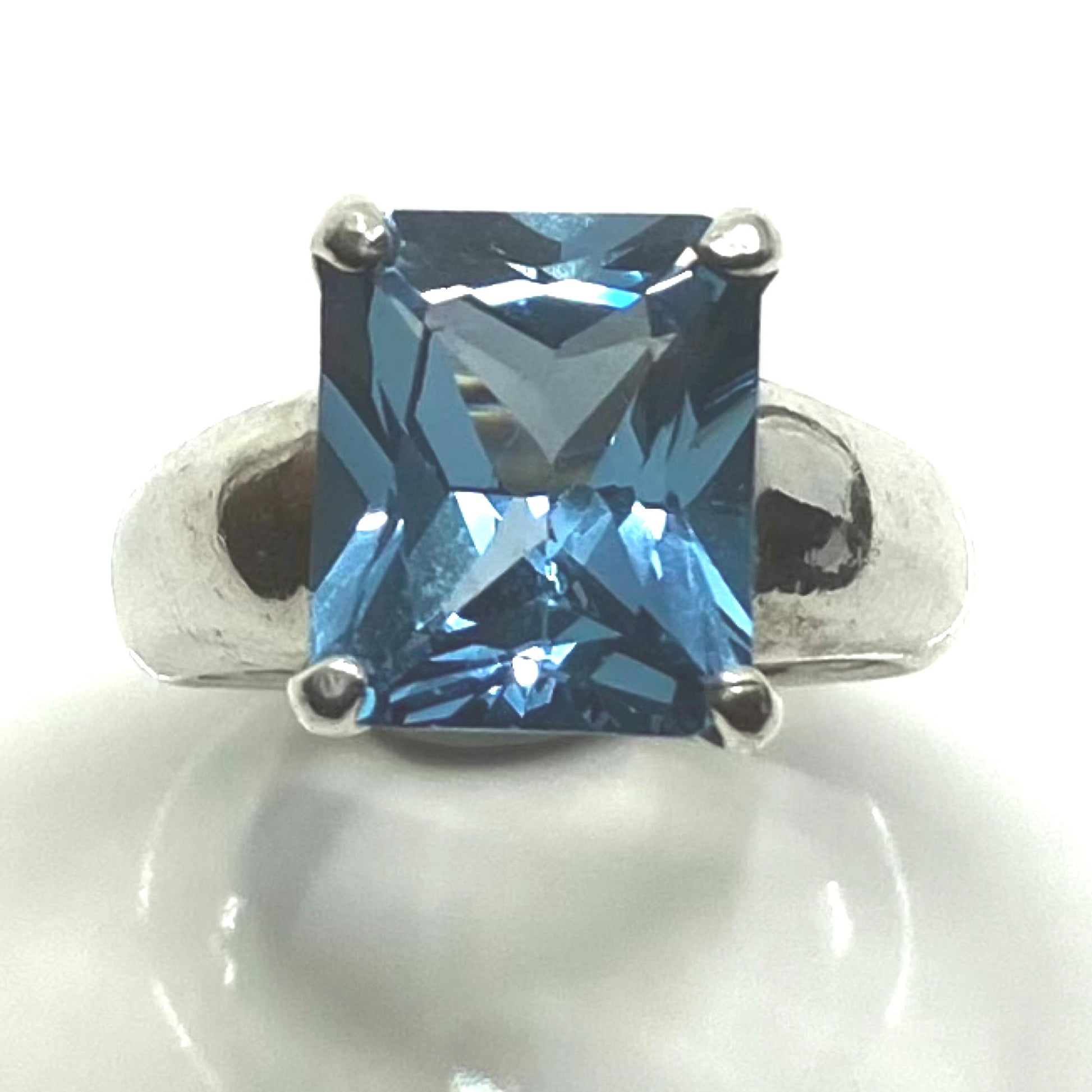 Blue Topaz and Sterling Silver Ring Faceted Rectangle
