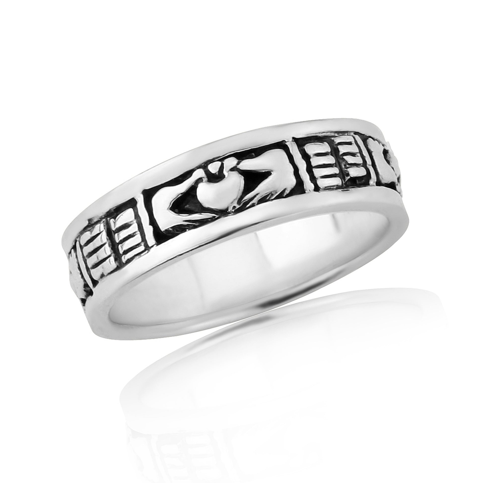 Celtic Claddagh Sterling Silver Band Ring