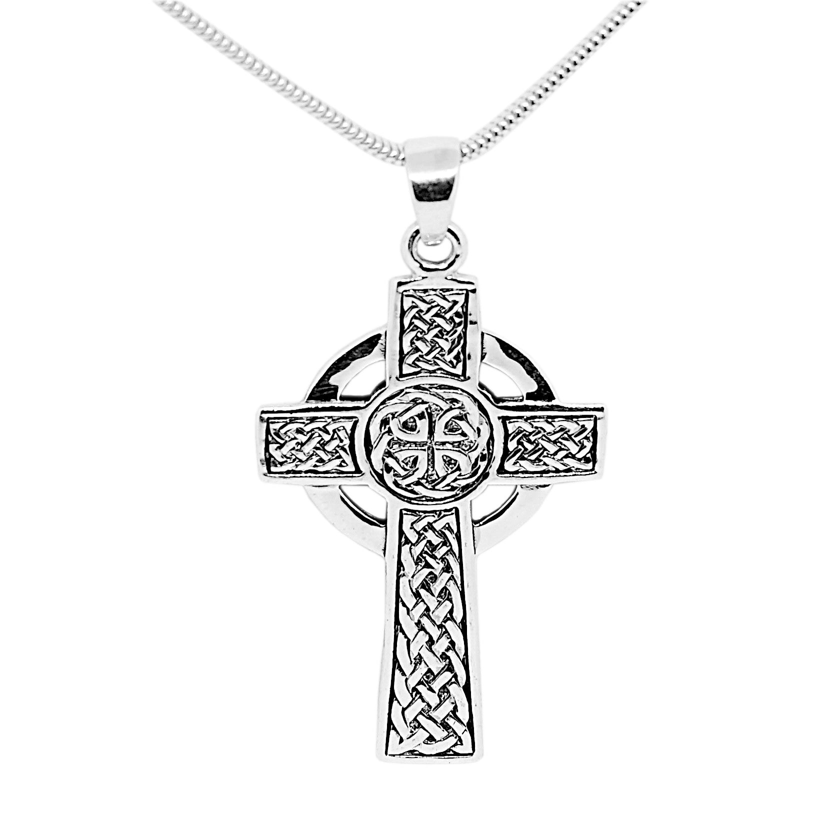 Celtic Cross Oxidised Sterling Silver Heavy Pendant and Chain