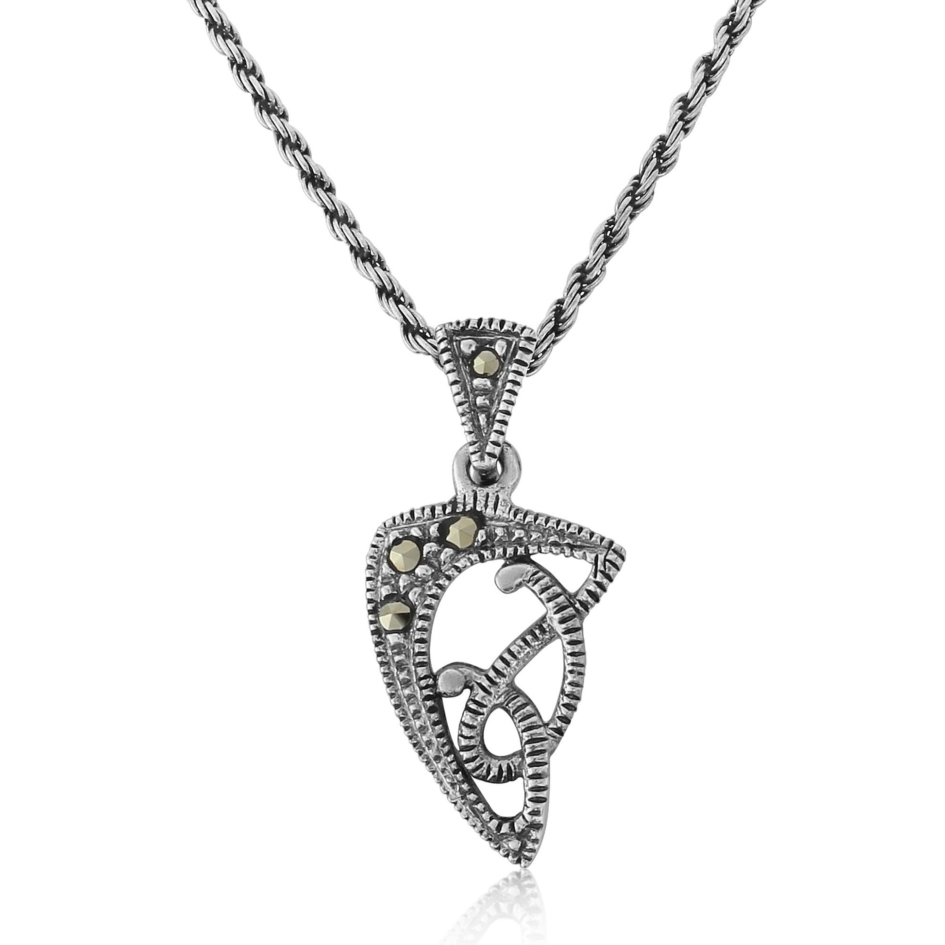 Celtic Knot Silver and Marcasite Pendant and Silver Chain