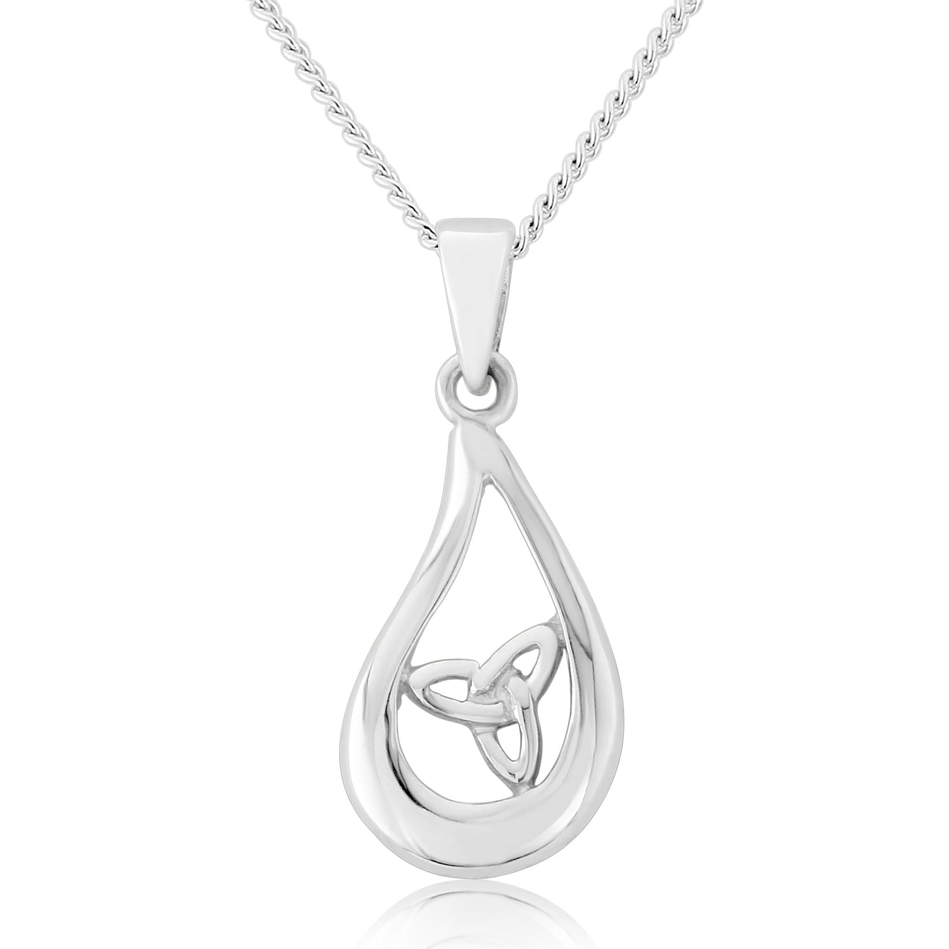 Celtic Trinity Pear shaped Sterling Silver Pendant and Chain