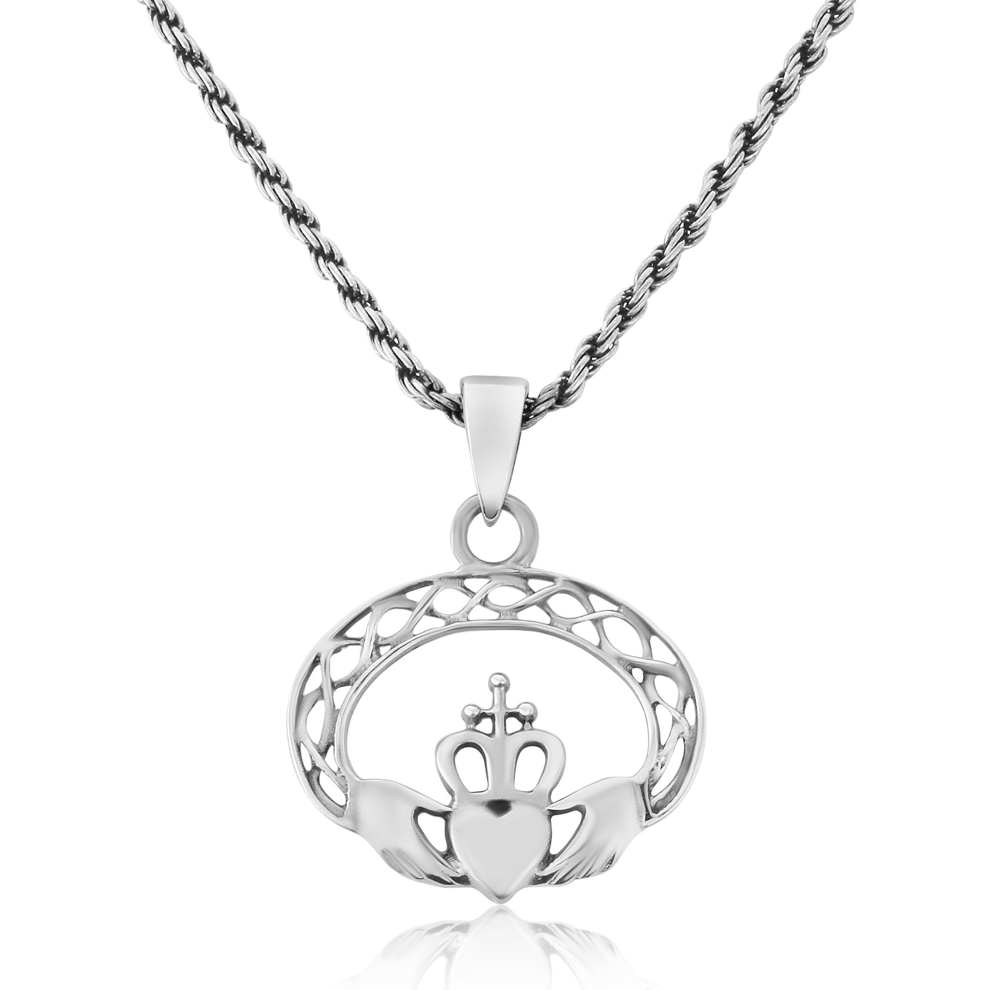 Claddagh Celtic Knot Silver Pendant and Oxidised Chain