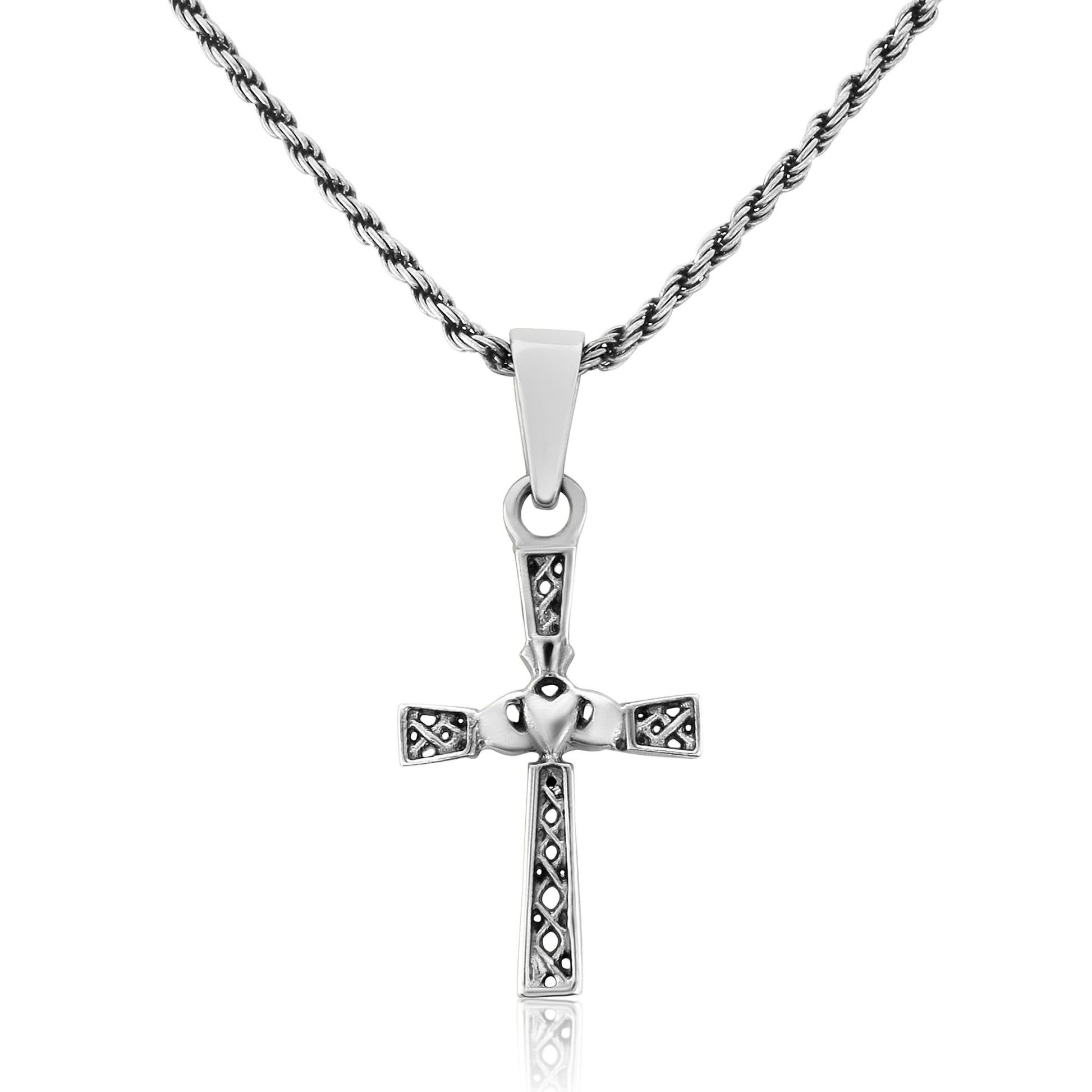 Claddagh Cross Celtic Knot Sterling Silver Pendant and Chain
