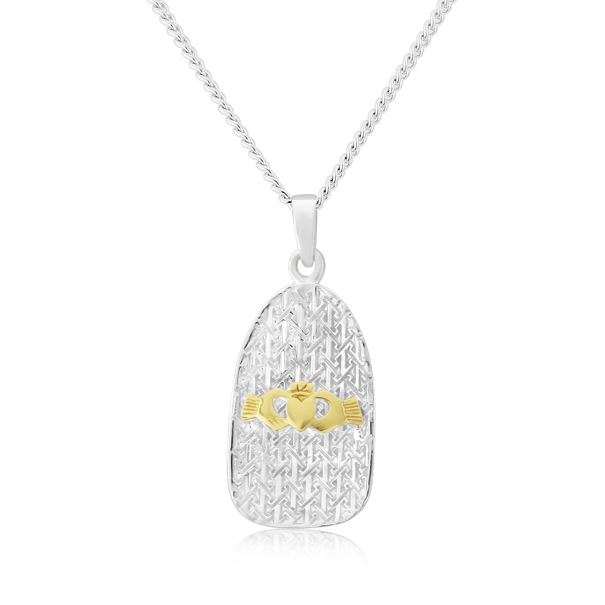 A very complimentary shaped pendant complete with traditional Claddagh!