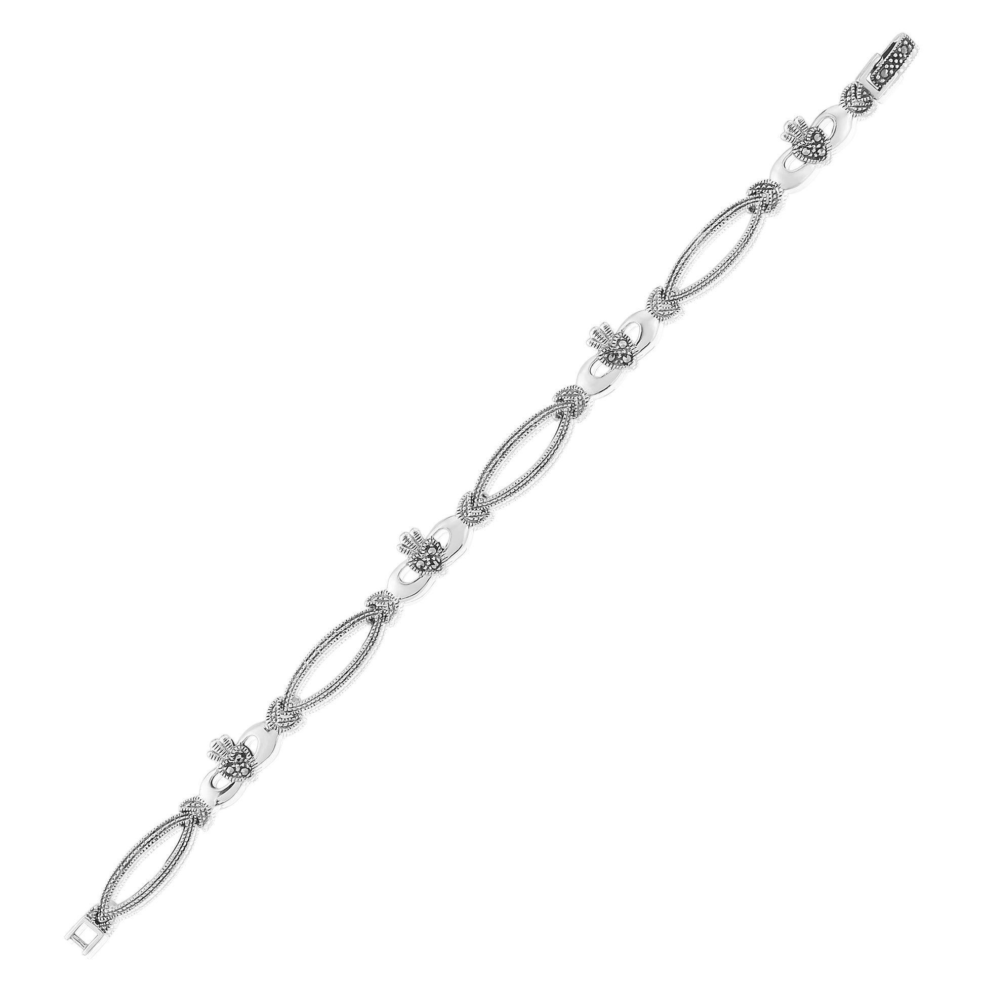 Irish Hallmarked Sterling Silver and Marcasite Claddagh Bracelet. Tri-fold clasp fastener.