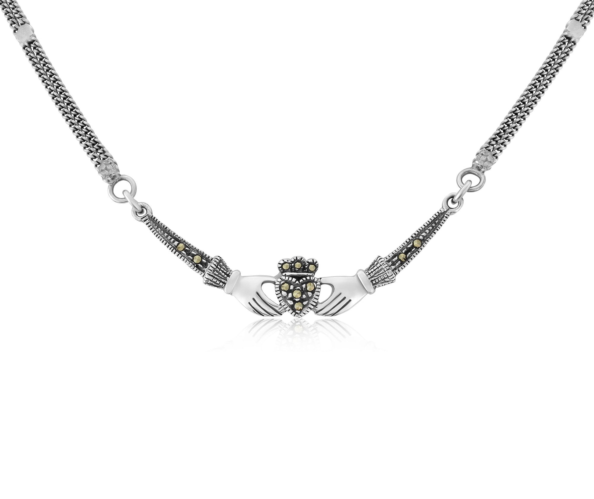 Claddagh Sterling Silver and Marcasite Necklace