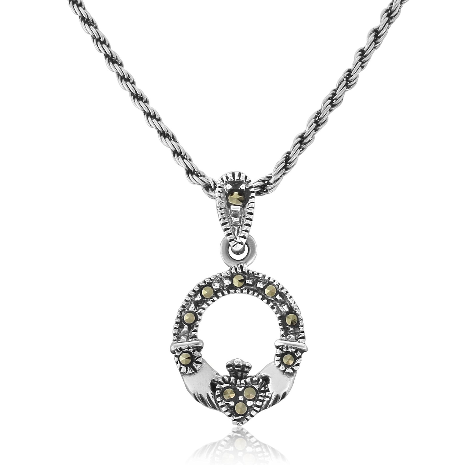 Claddagh Sterling Silver and Marcasite Pendant and Chain