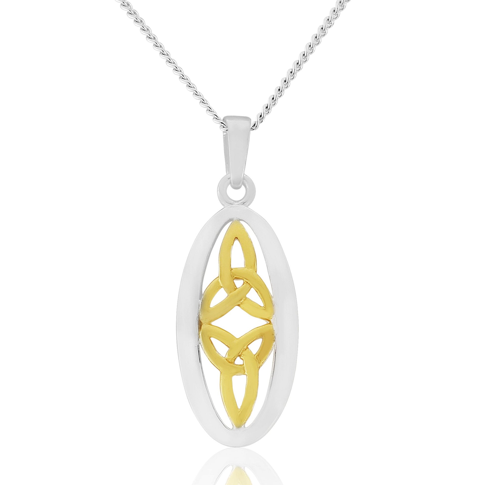 Irish Hallmarked Gold Plated and Sterling Silver Double Trinity Knot Oval Open-backed Pendant and 16" Curb chain.