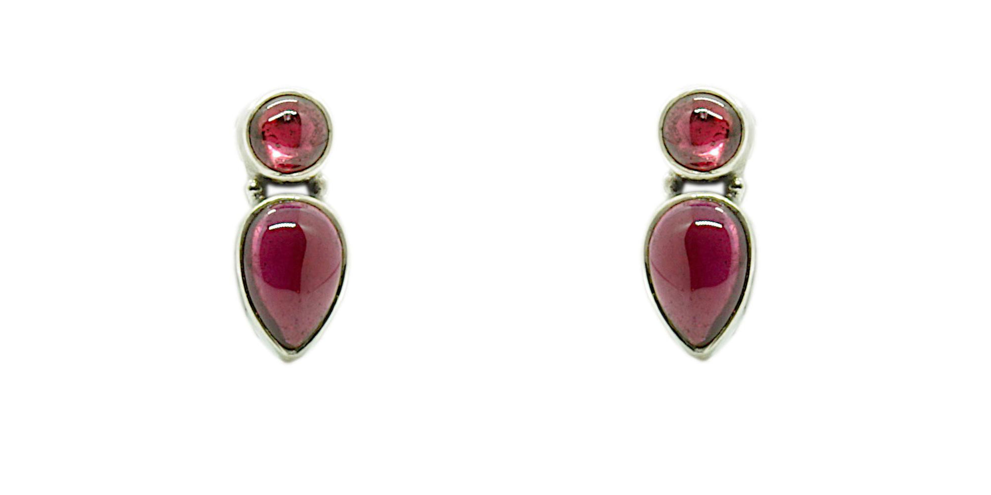 Irish Hallmarked Sterling Silver Garnet 2 stone earrings with Stud backs