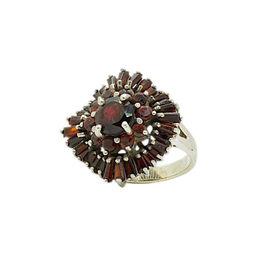 Irish Hallmarked Garnet Cluster Sterling Silver Ring