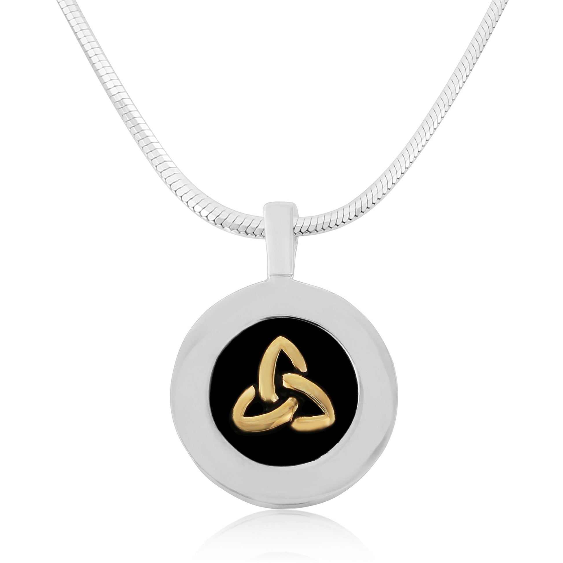Gold Plated Silver Celtic Trinity Knot in Oxidised Circle Pendant and Chain