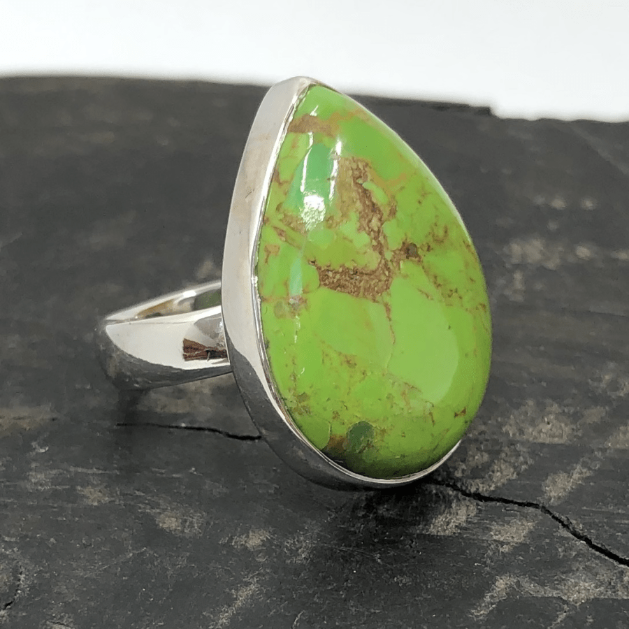 Green Turquoise is an opaque mineral composed of zinc, copper and aluminum and is widely used in Native American Jewellery.