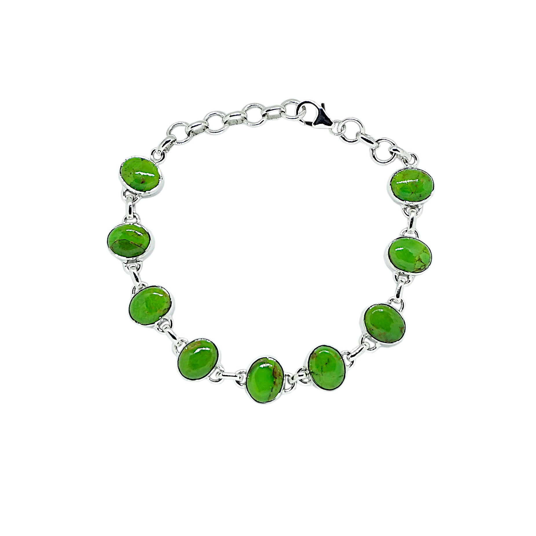 Green Turquoise Oval Stone Sterling Silver Bracelet