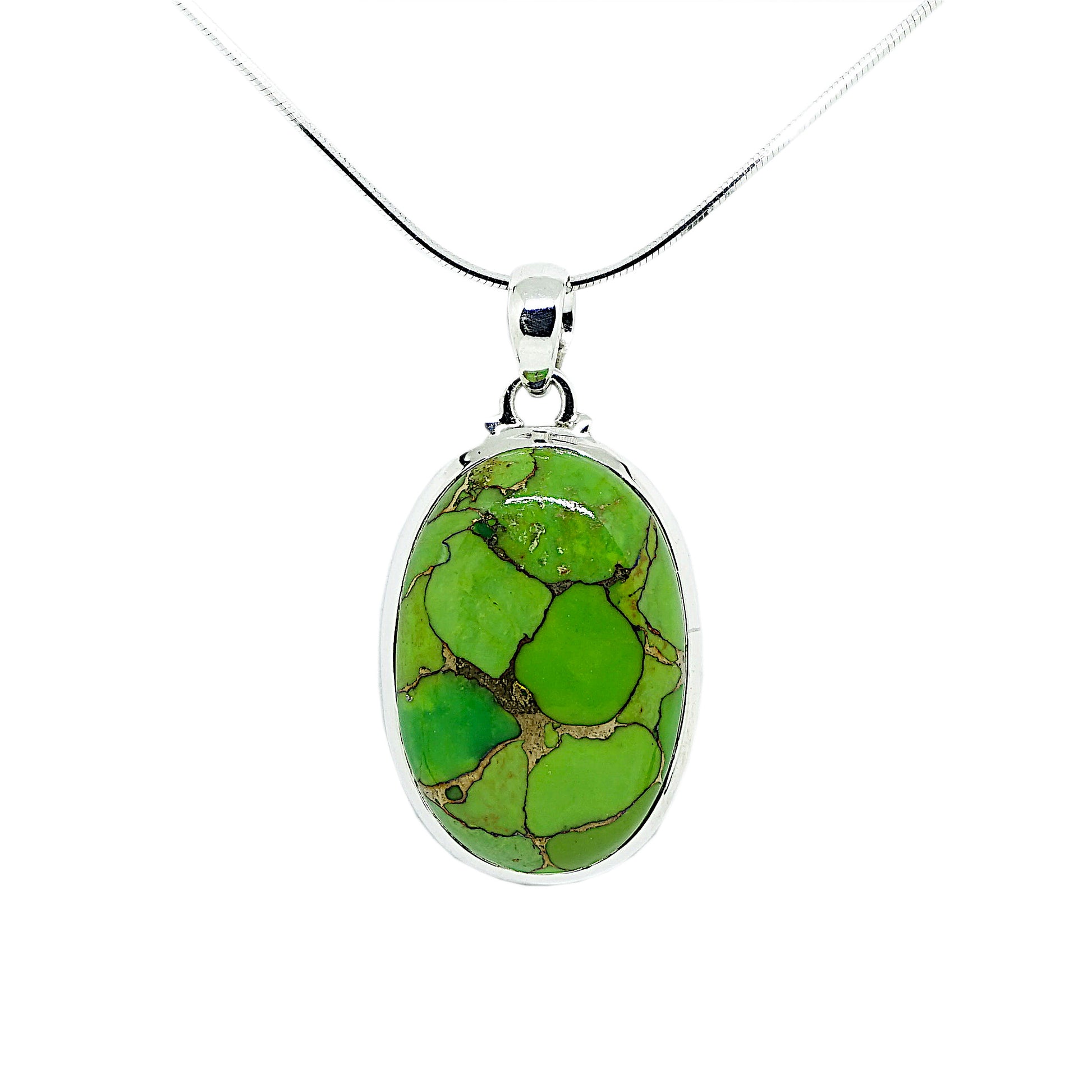 Green Turquoise Sterling Silver Oval Pendant on Silver Chain