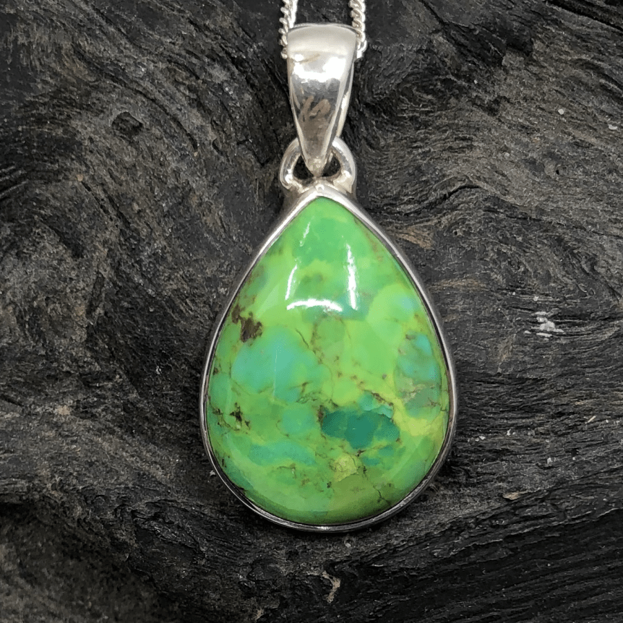 Green Turquoise Sterling Silver Pear Pendant on Silver Chain