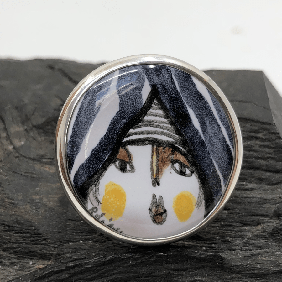 Handmade Ceramic Face in Sterling Silver Ring Gia