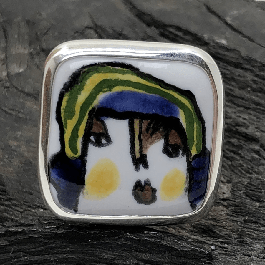 Handmade Ceramic Face in Sterling Silver Ring Isa