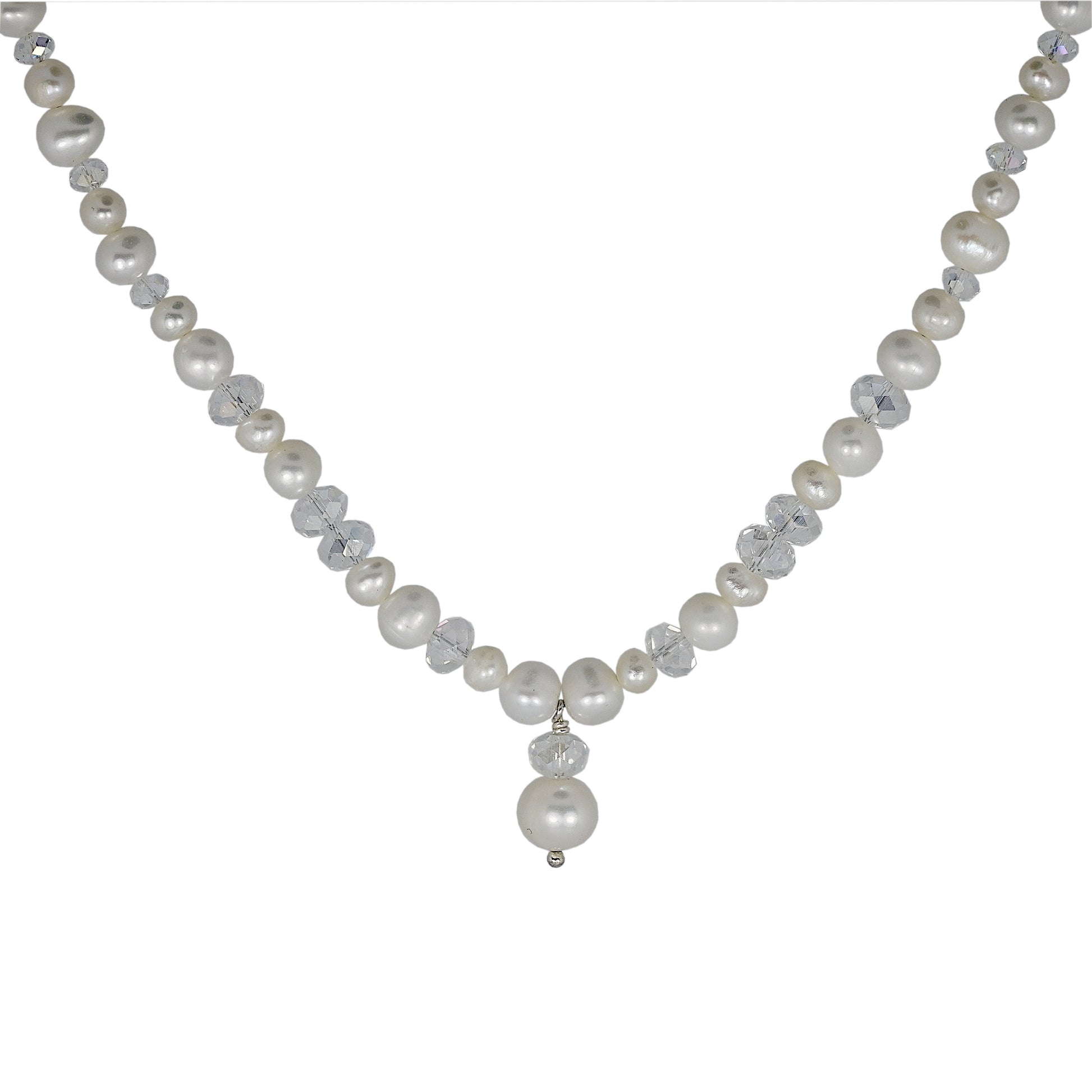 Handmade Freshwater Cultured Pearls with Crystals and double pearl drop and Sterling Silver extension and clasp
