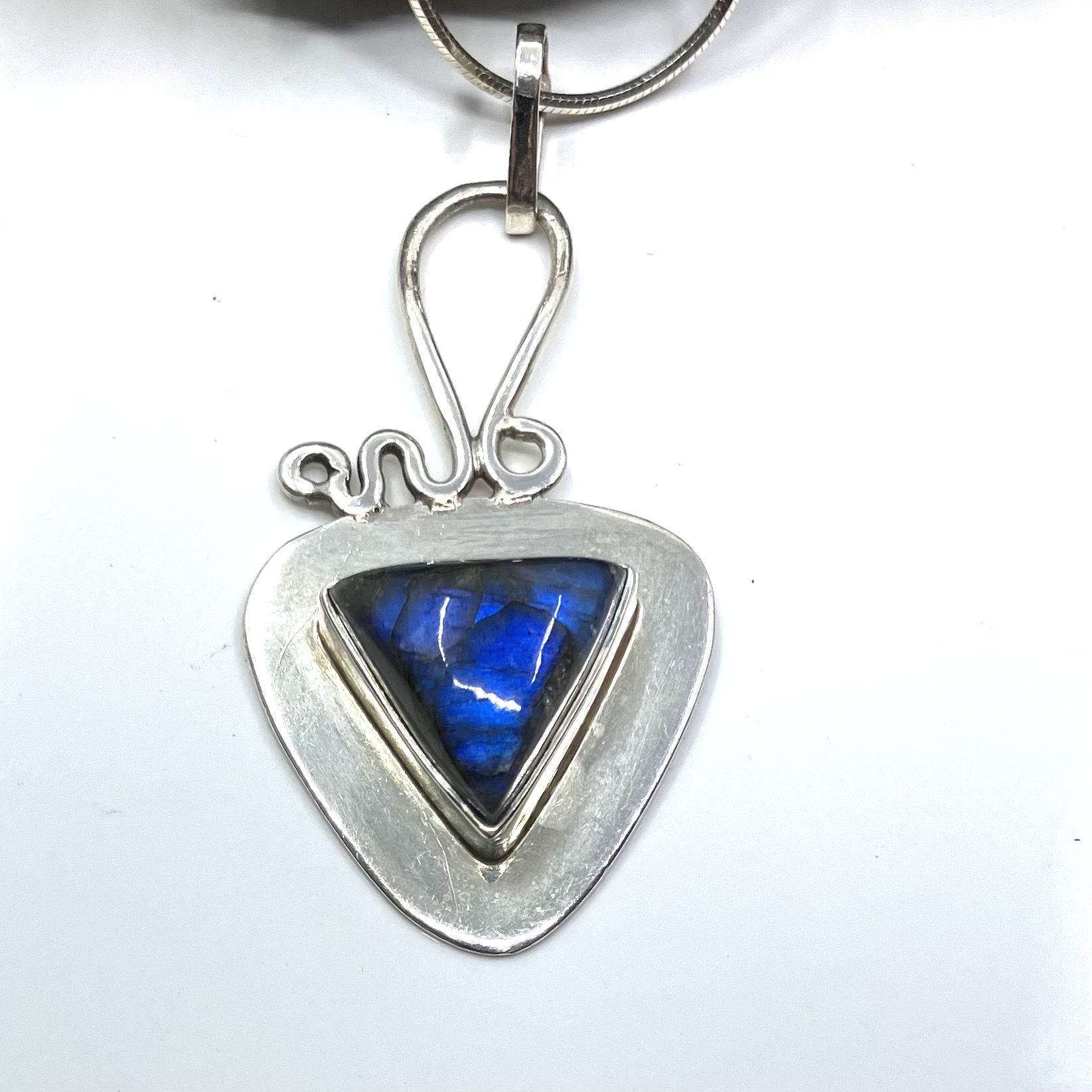 Labradorite and Sterling Silver Pendant Triangular on Silver Chain