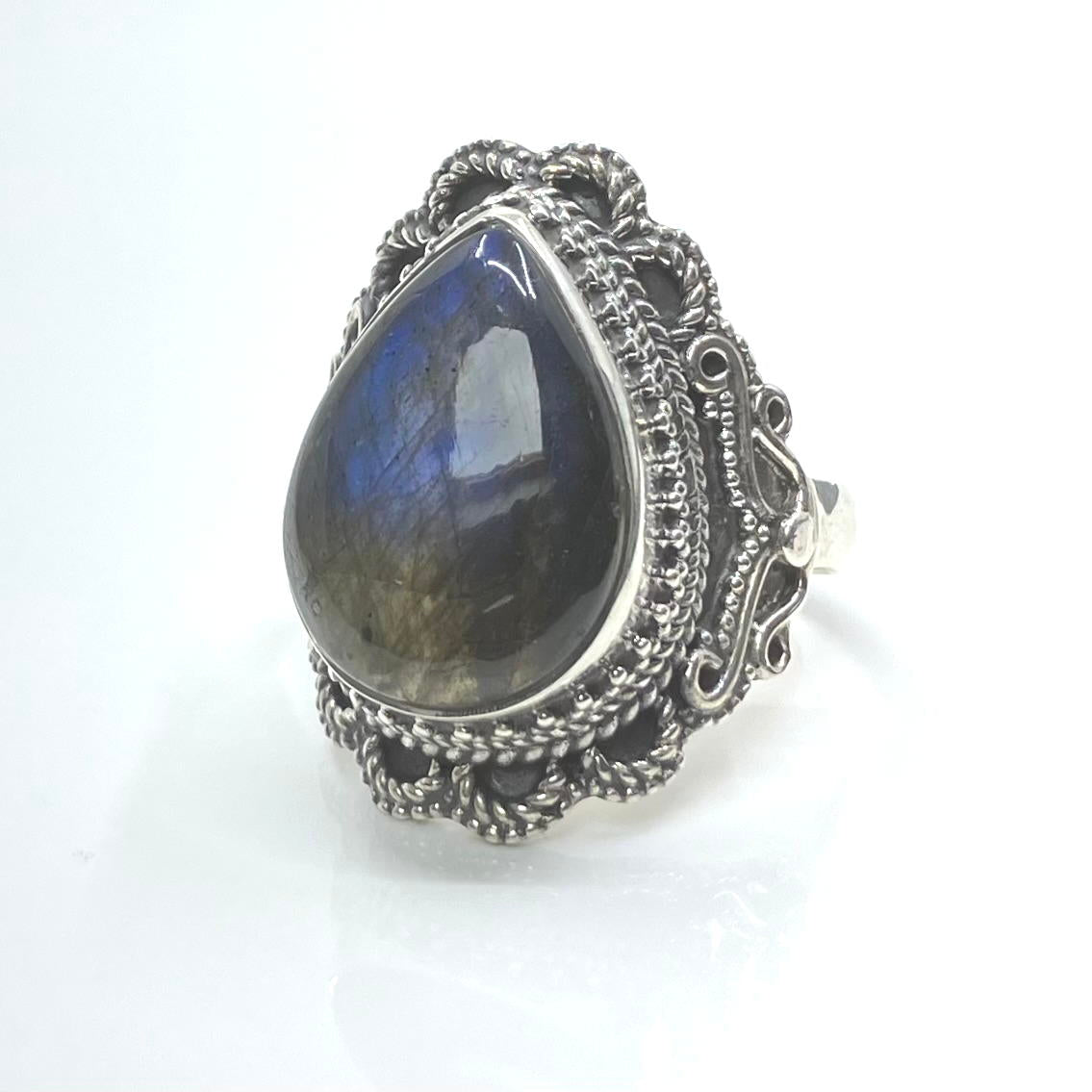 Labradorite is a feldspar and it's iridescence is the result of water being trapped during formation. This stone is said to bring out the strengths of the wearer.