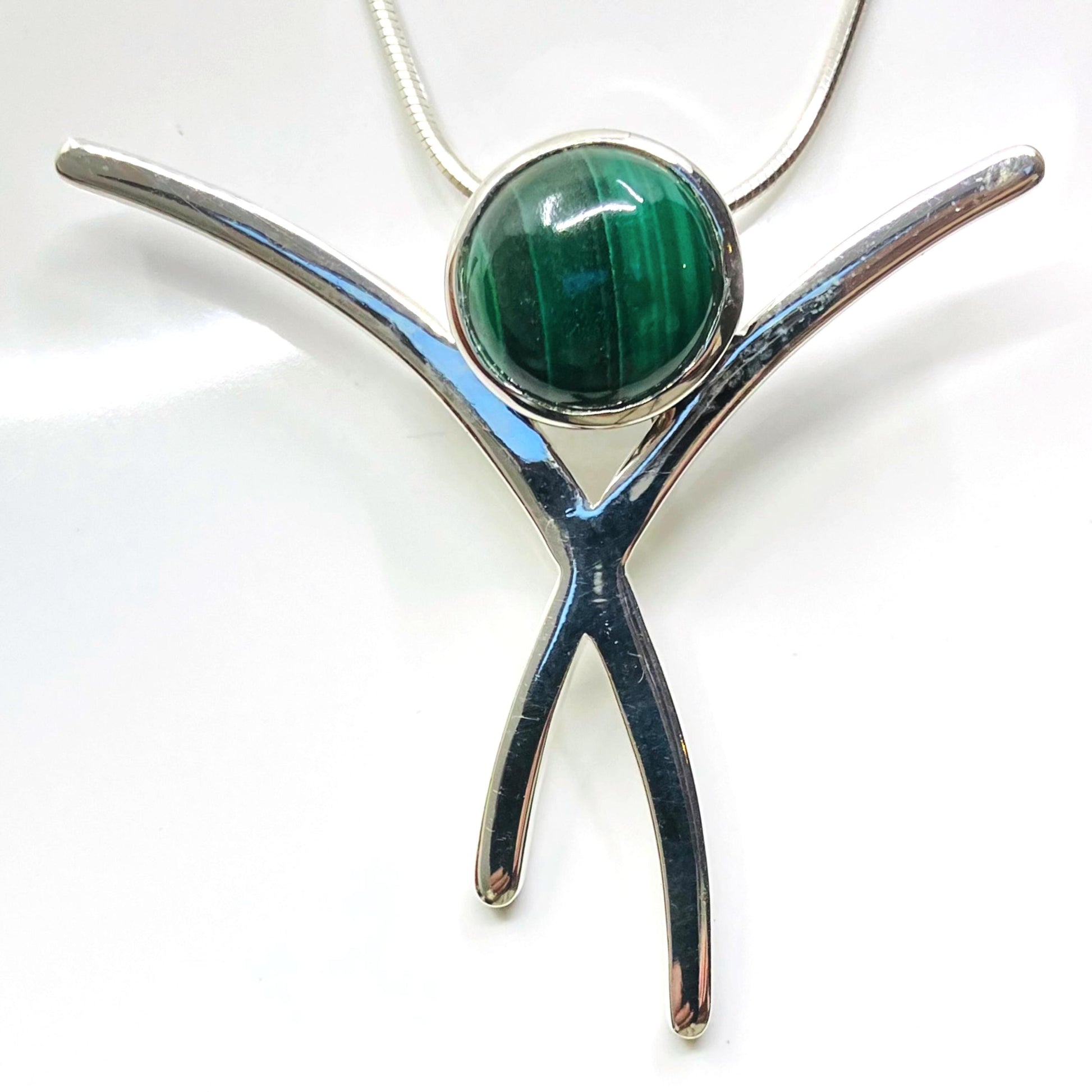 Malachite and Sterling Silver Pendant Criss-Cross on Silver Chain