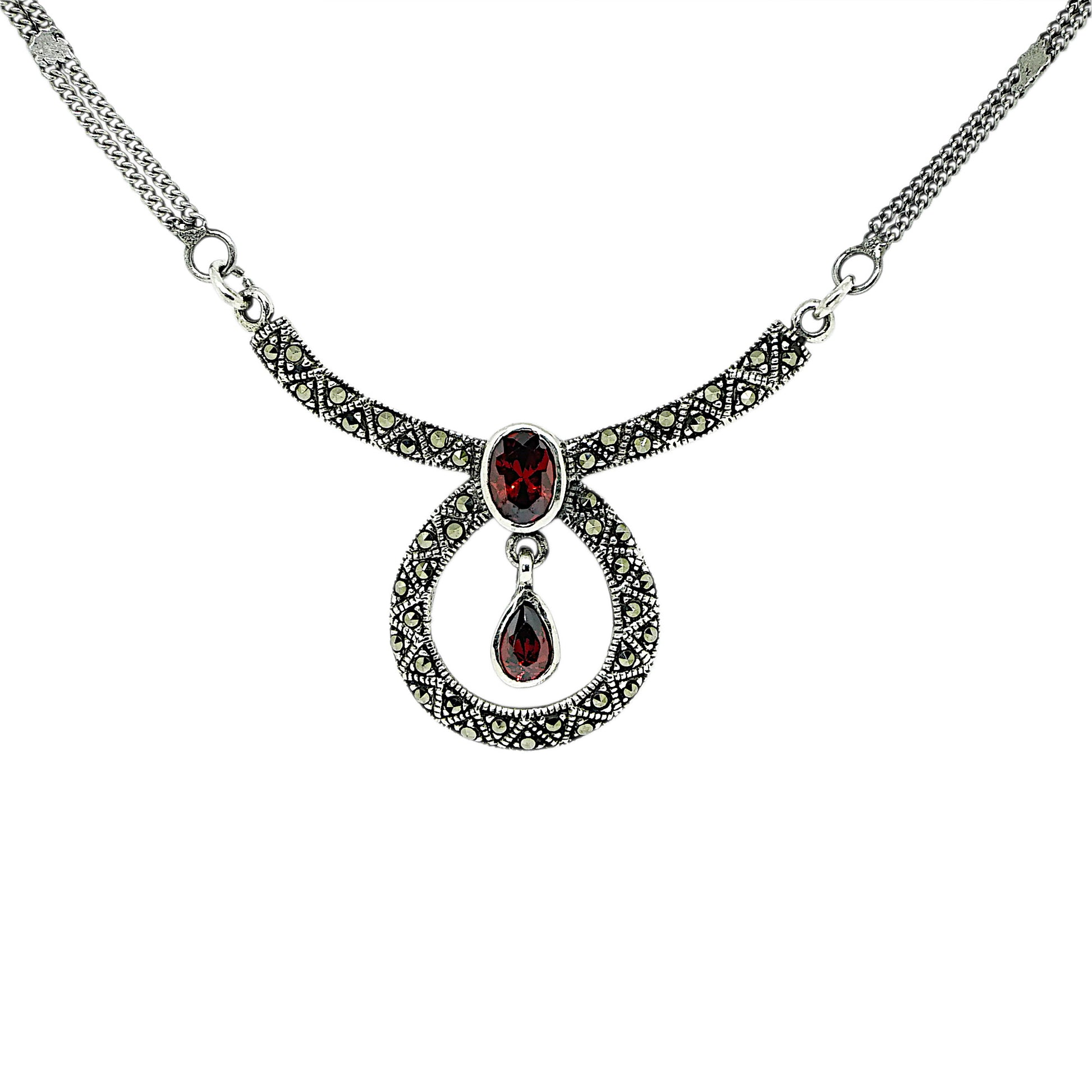 Irish Hallmarked Sterling Silver Marcasite and Garnet Necklace.