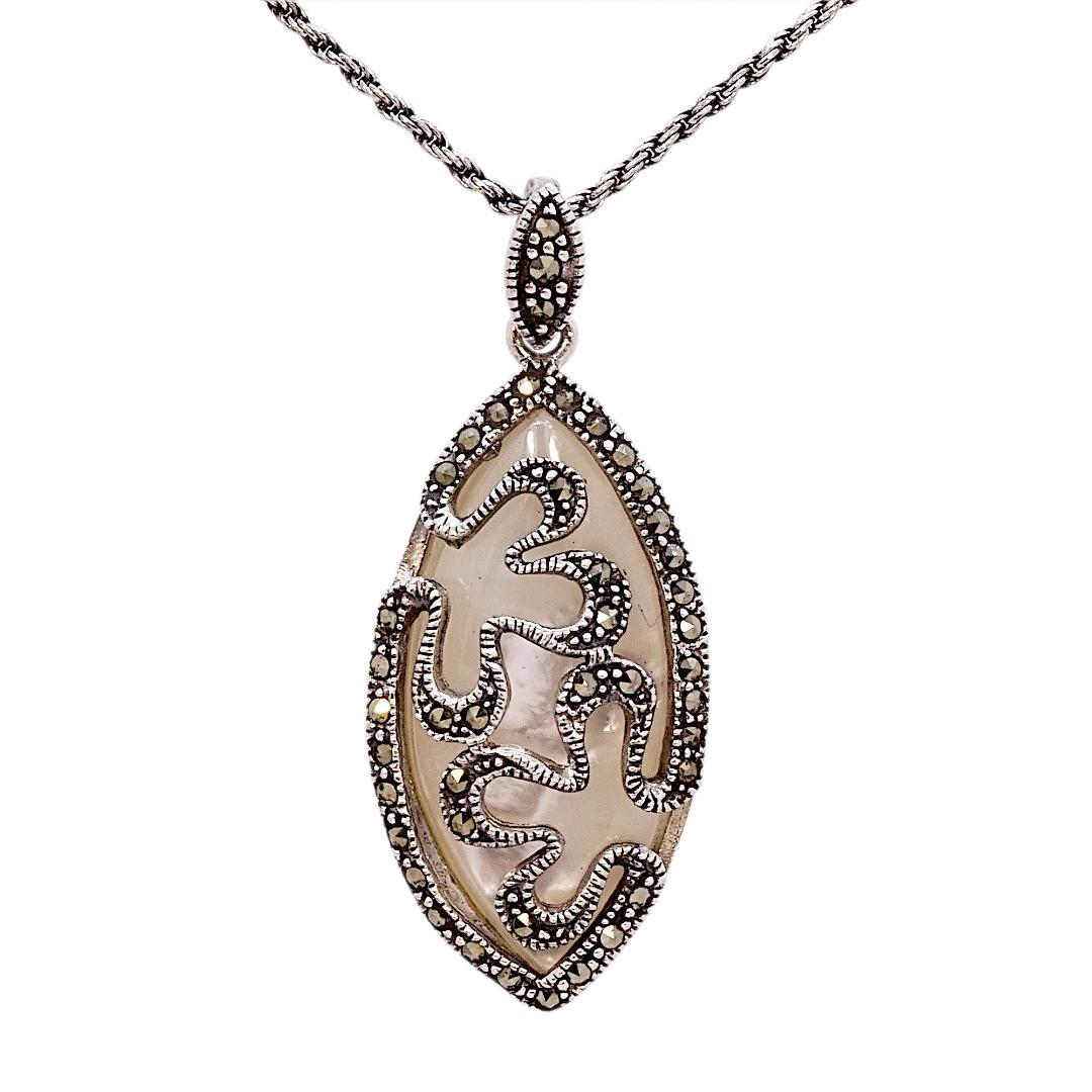 Marcasite and Mother of Pearl Pendant and Chain