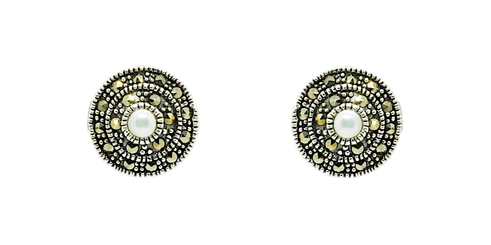 Marcasite and Pearl Sterling Silver Studs