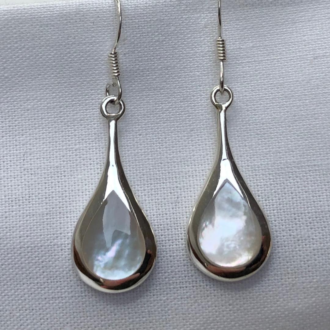 Mother of Pearl and Sterling Silver Drop Earrings with Hook Backs
